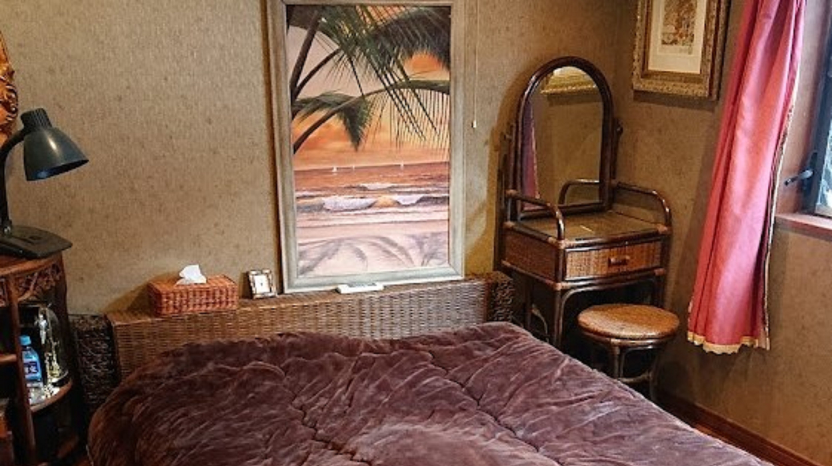 ダブルのベッドにお二人でお泊まりいただき部屋のデコレーションもエキゾチックになっております。もちろん1名様もお泊まりいただけます。